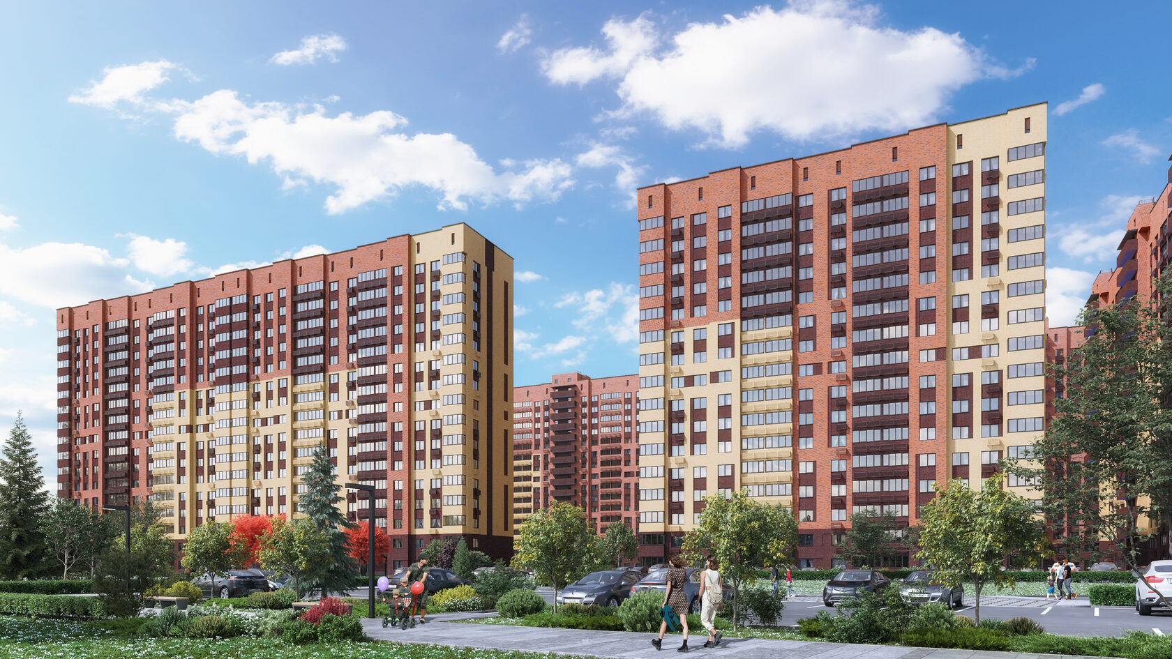 Двор без машин Парковки за домами, а во дворе — детский игровой комплекс, тренажёры и универсальное спортивное поле. Устраивайте футбольные турниры с соседями!